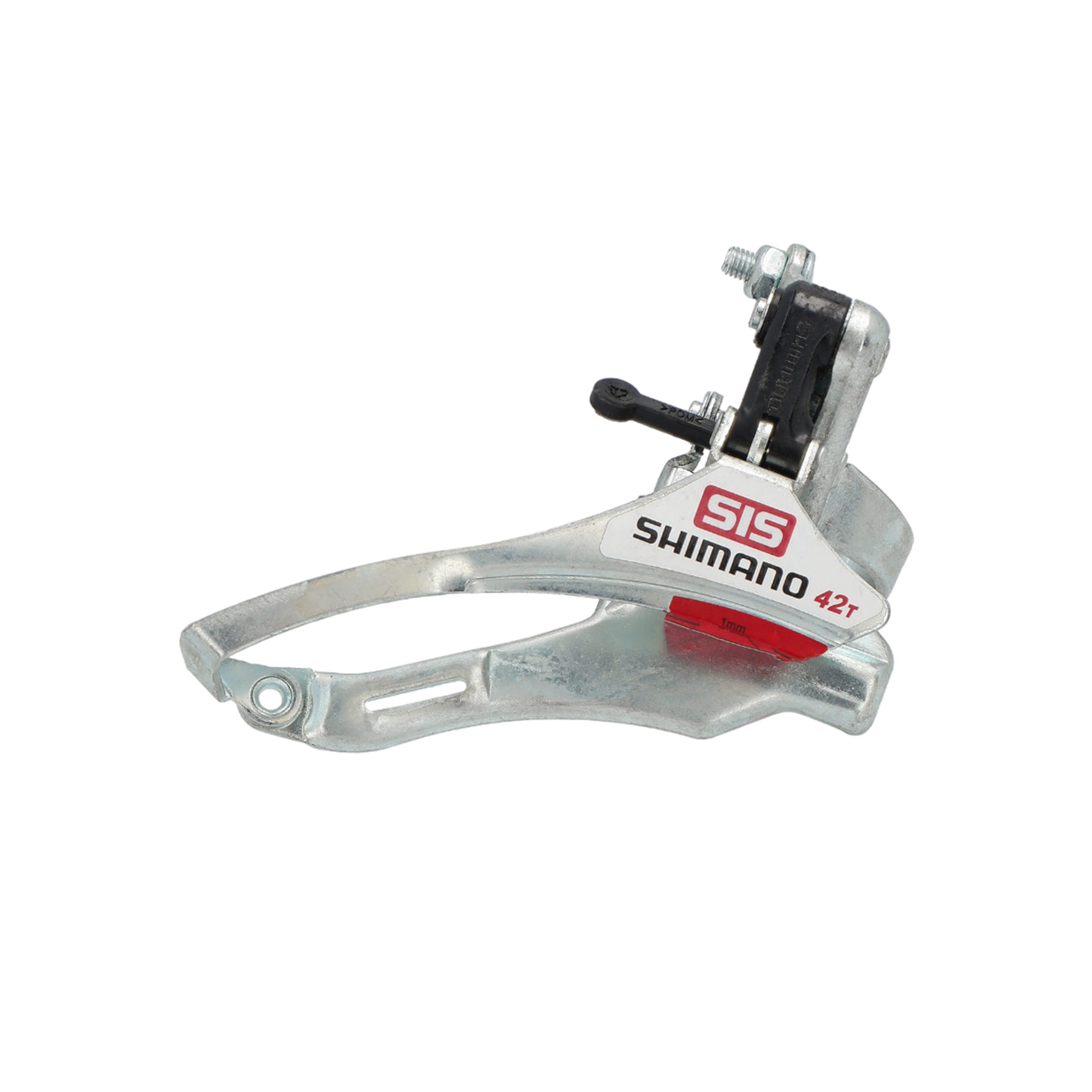 Передний переключатель Shimano Tourney FD-TY10. Нижняя тяга, максимальное количество зубьев на звезде 42T. Хомут 31.8 мм. На перья 66–69°.Особенности и характеристики: