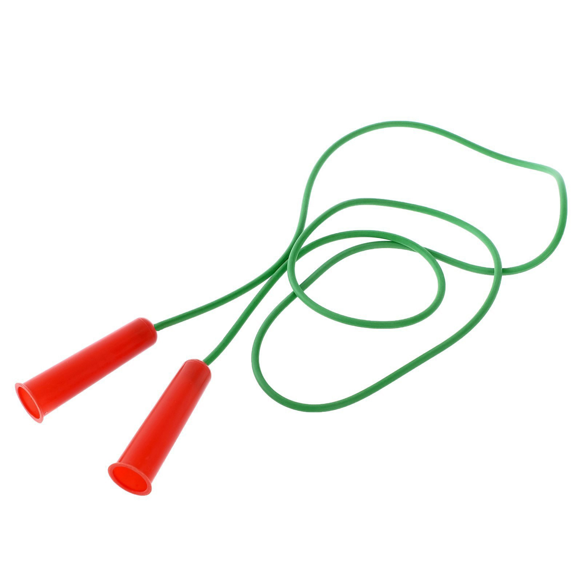 Скакалка с цветным шнуром с пластмассовыми ручки.Характеристики: